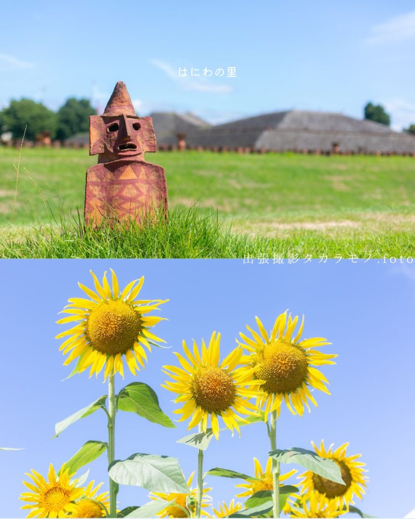 はにわの里は、お祭りの時には子供用の汽車が走ったり、花火大会も見られる、地元の方に愛されるHAPPYな場所です。ひまわり迷路は手作りの味のある看板がかわいい