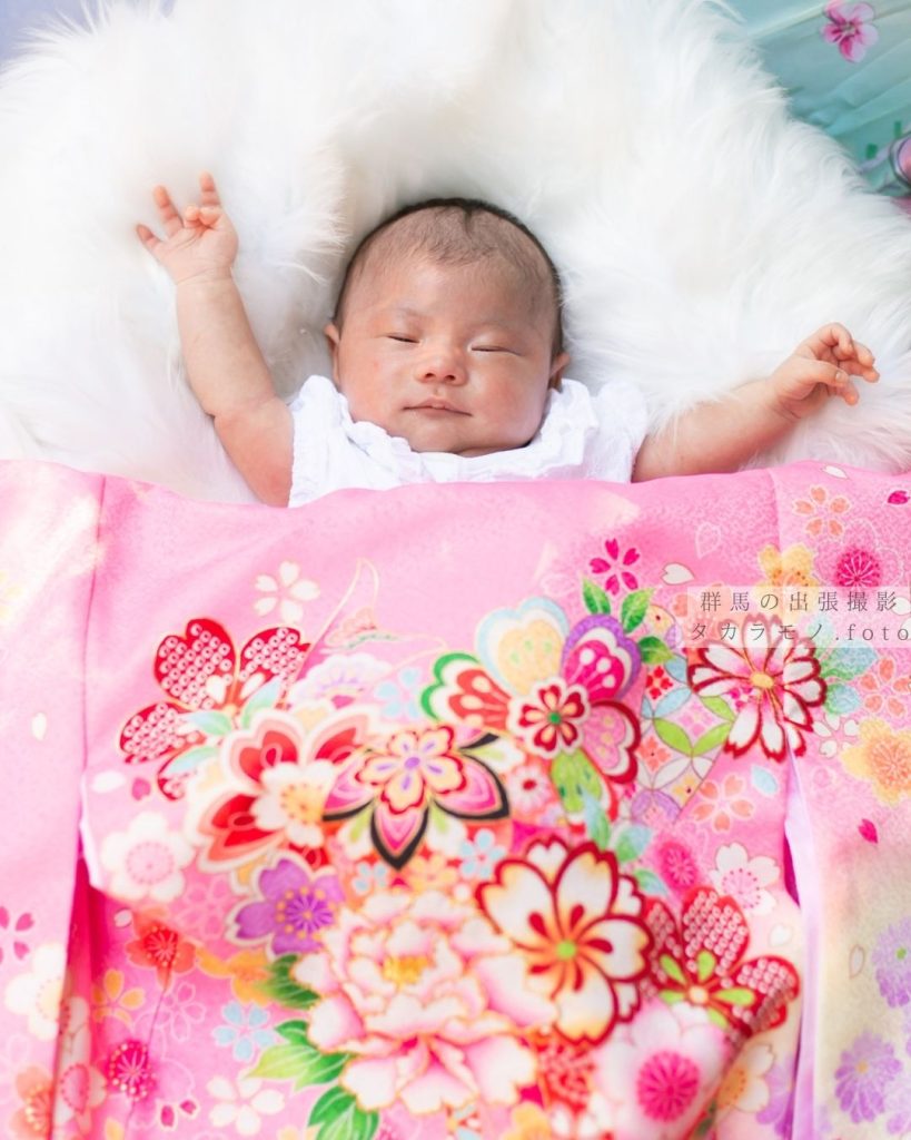 レンタル産着は撮影日に神社までフォトグラファーが持参し、撮影後そのまま持ち帰ります。
