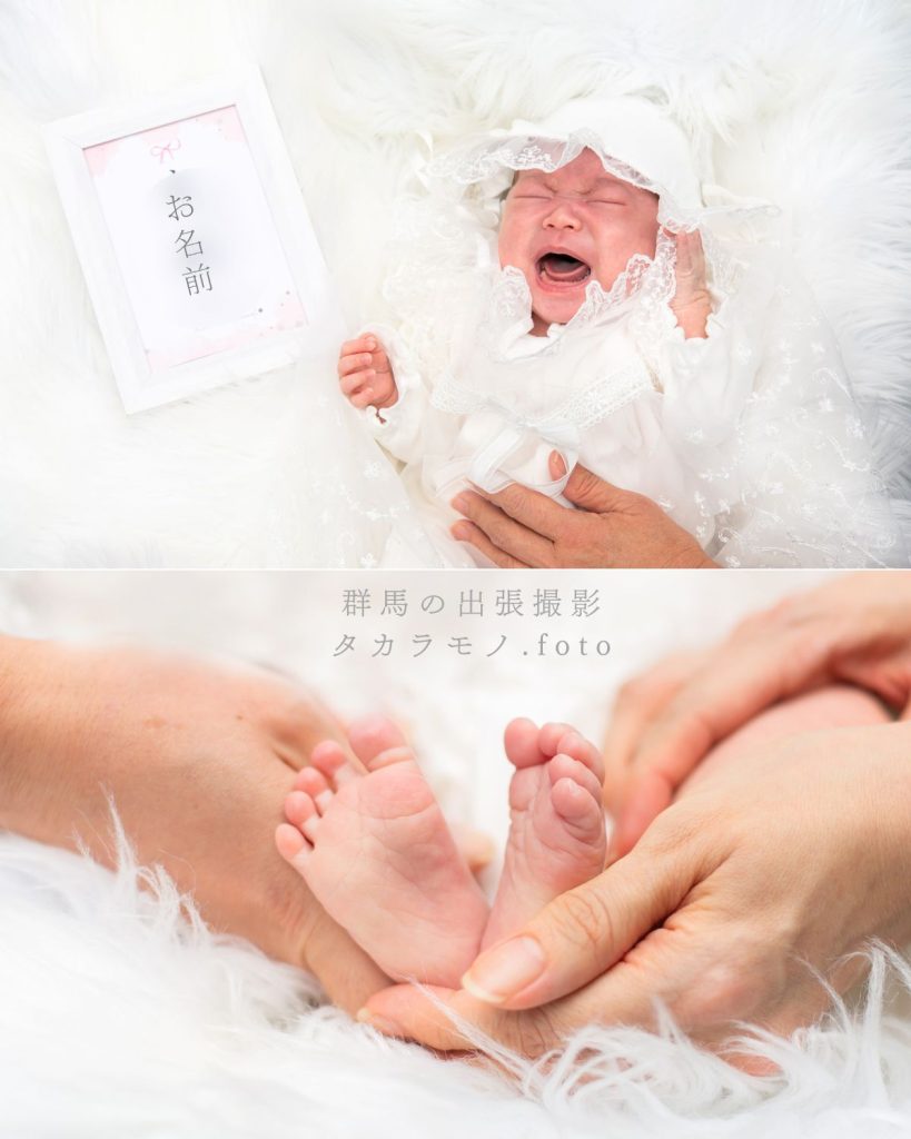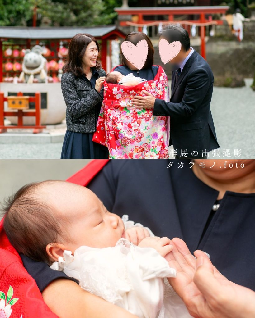 この赤い産着は撮影用レンタルも承れます(オプション)。