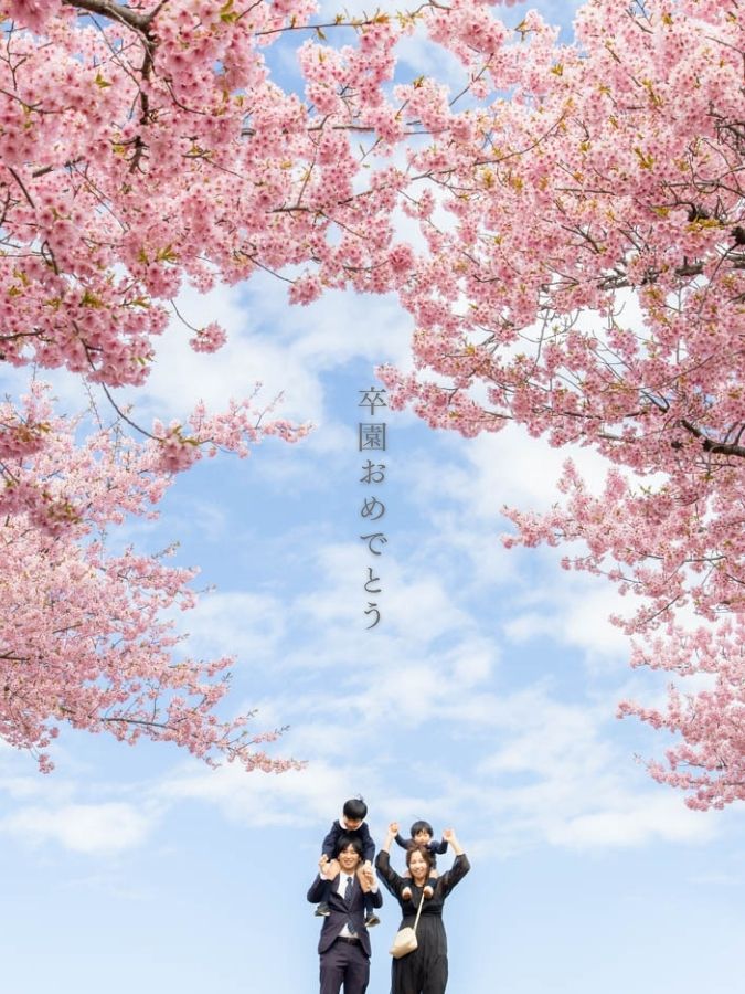 春になると河津桜やソメイヨシノが見ごろを迎え、卒園・卒業の記念にぴったりのロケーションがたくさんあります。