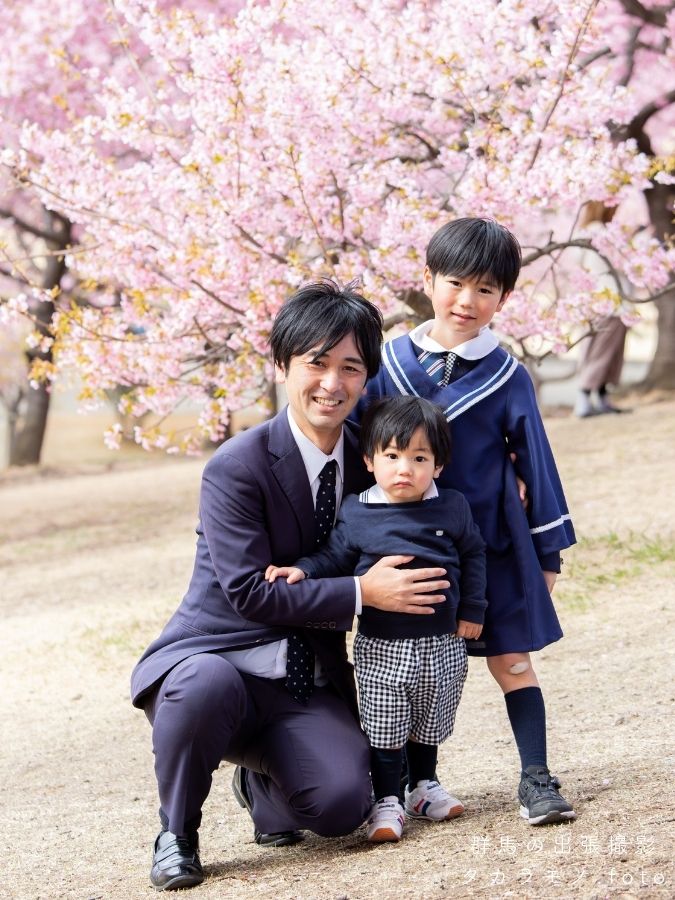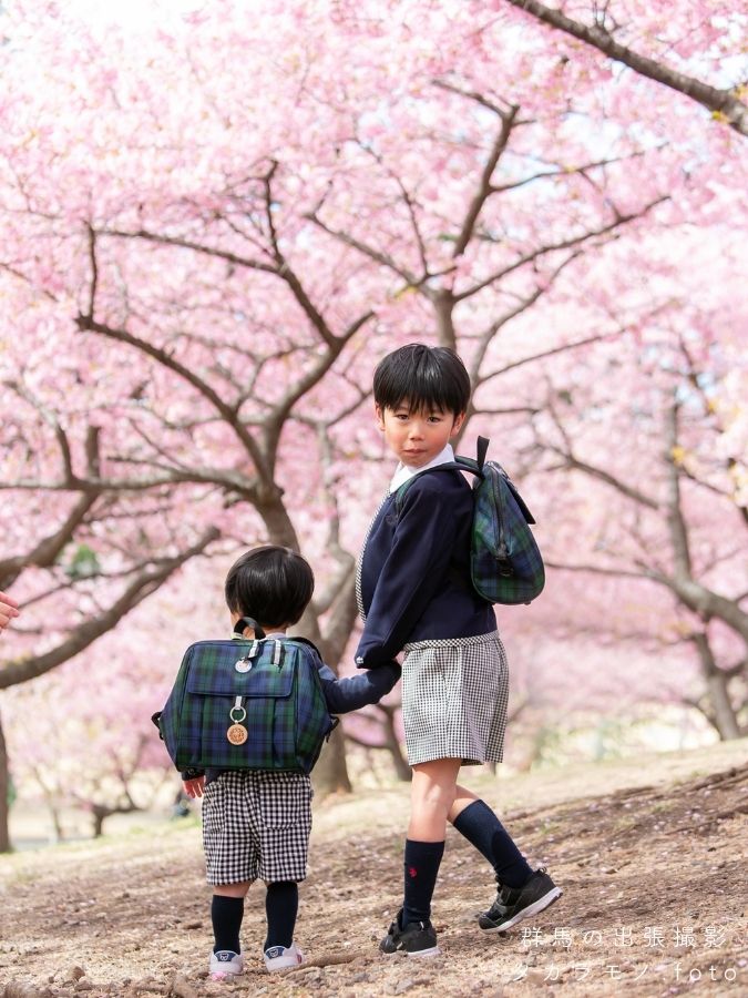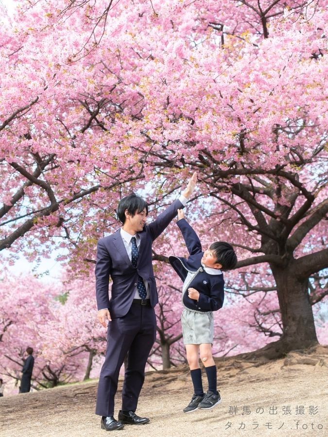今回は、伊勢崎市の河津桜の下で行った卒園記念のロケーション撮影をご紹介します。