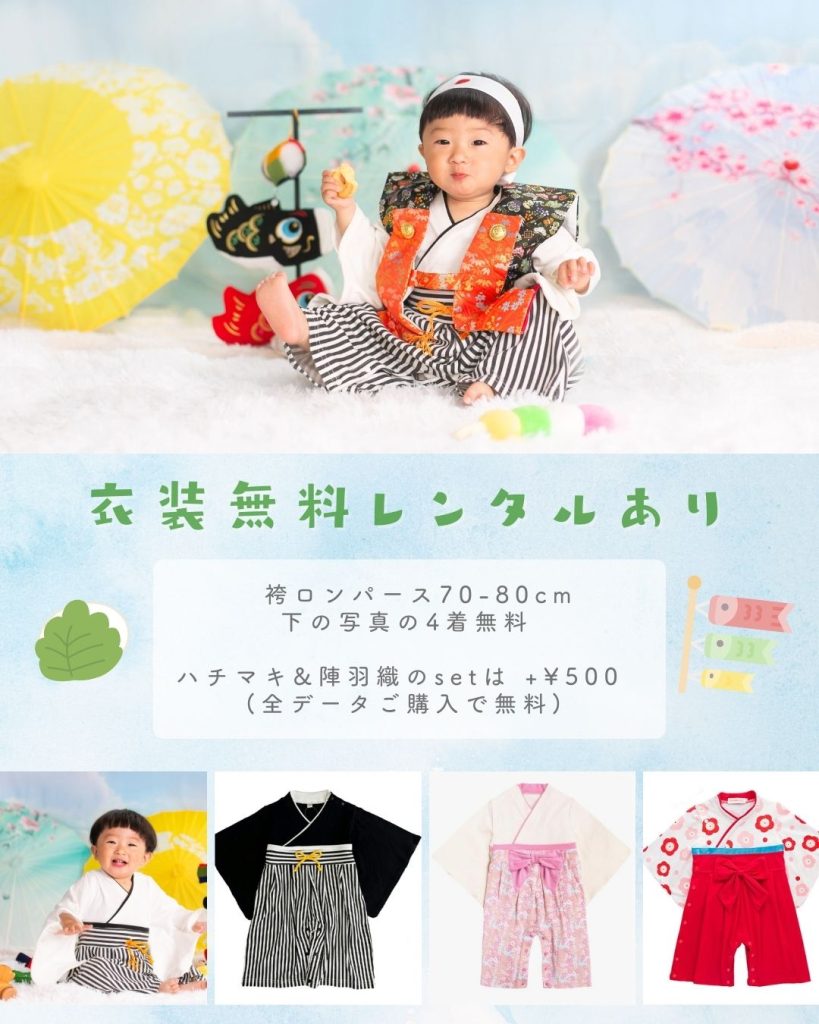 上の画像の袴ロンパース無料(撮影時は1着をお選びください。)