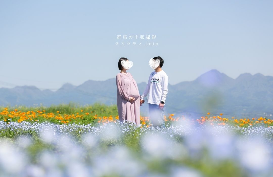 高崎市の花畑でマタニティフォトのロケーション撮影